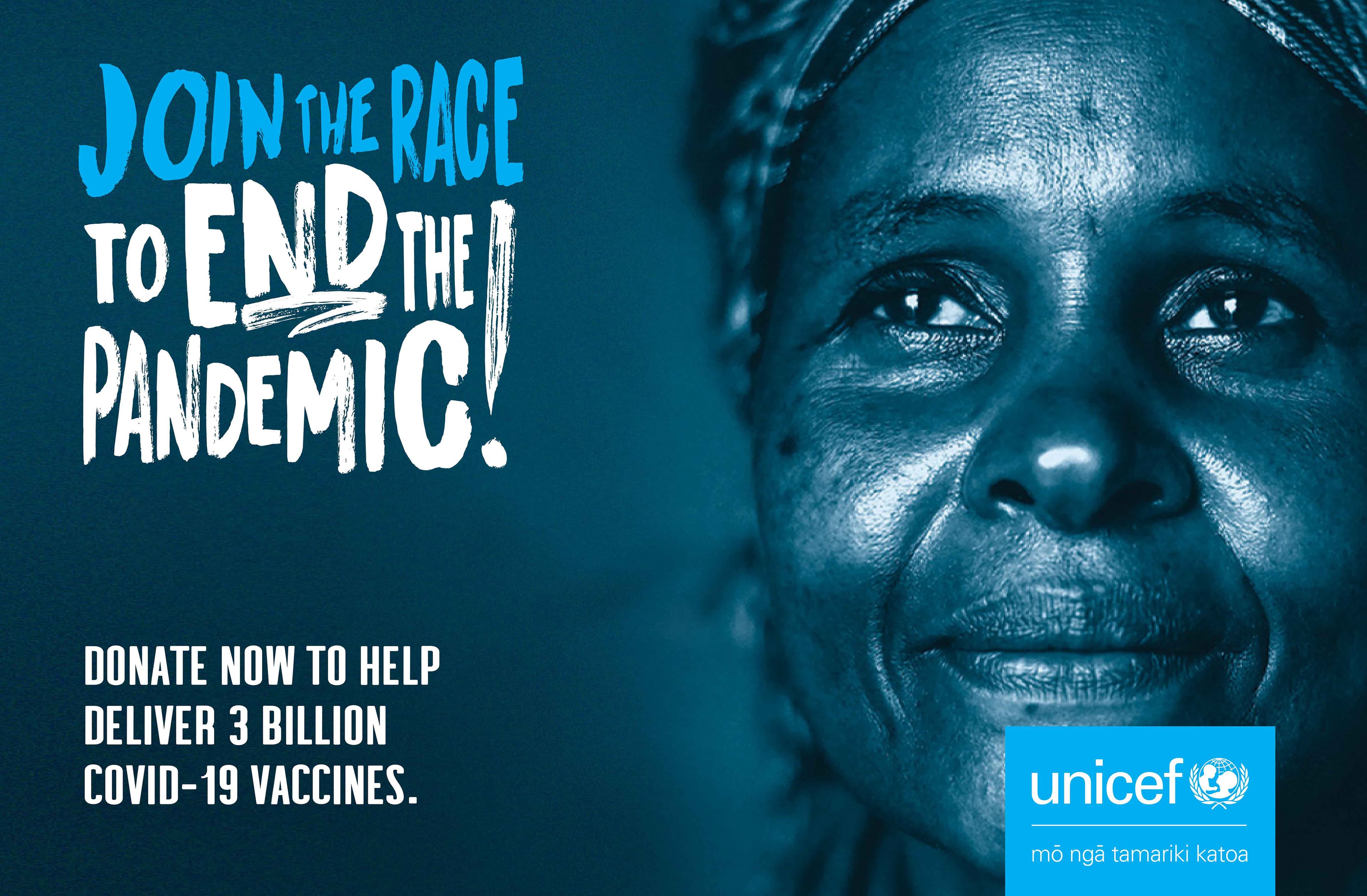 We designed two COVAX campaigns that were all about raising funds to deliver 3 billion vaccines to middle and low income countries to help end the pandemic. The key messaging was first focussed on people who have got their shot and encouraging them to consider others who don’t have that opportunity. And then later in the year when we had mass levels of vaccinations, we dovetailed to more of rallying cry to end the pandemic. They needed a visual style that was super simple and distinctive from other campaigns as well as creating a sense of urgency. We used bold, hand drawn key messaging to feel urgent and human and partnered this with beautiful close up, engaging portraits of people to keep human need at the forefront of this campaign. The in the moment approach feels intimate and observational. We added a brush stroke version of the poutama pattern to include a bicultural element with a strong UNICEF blue presence. We designed social media campaigns including static and animated ads as well as assets across UNICEF full suite of platforms to drive donations.